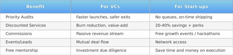 Mutual disadvantage: VCs watch promising projects stall; startups launch vulnerable while overpaying. SPP bridges this with prioritized support and shared success.